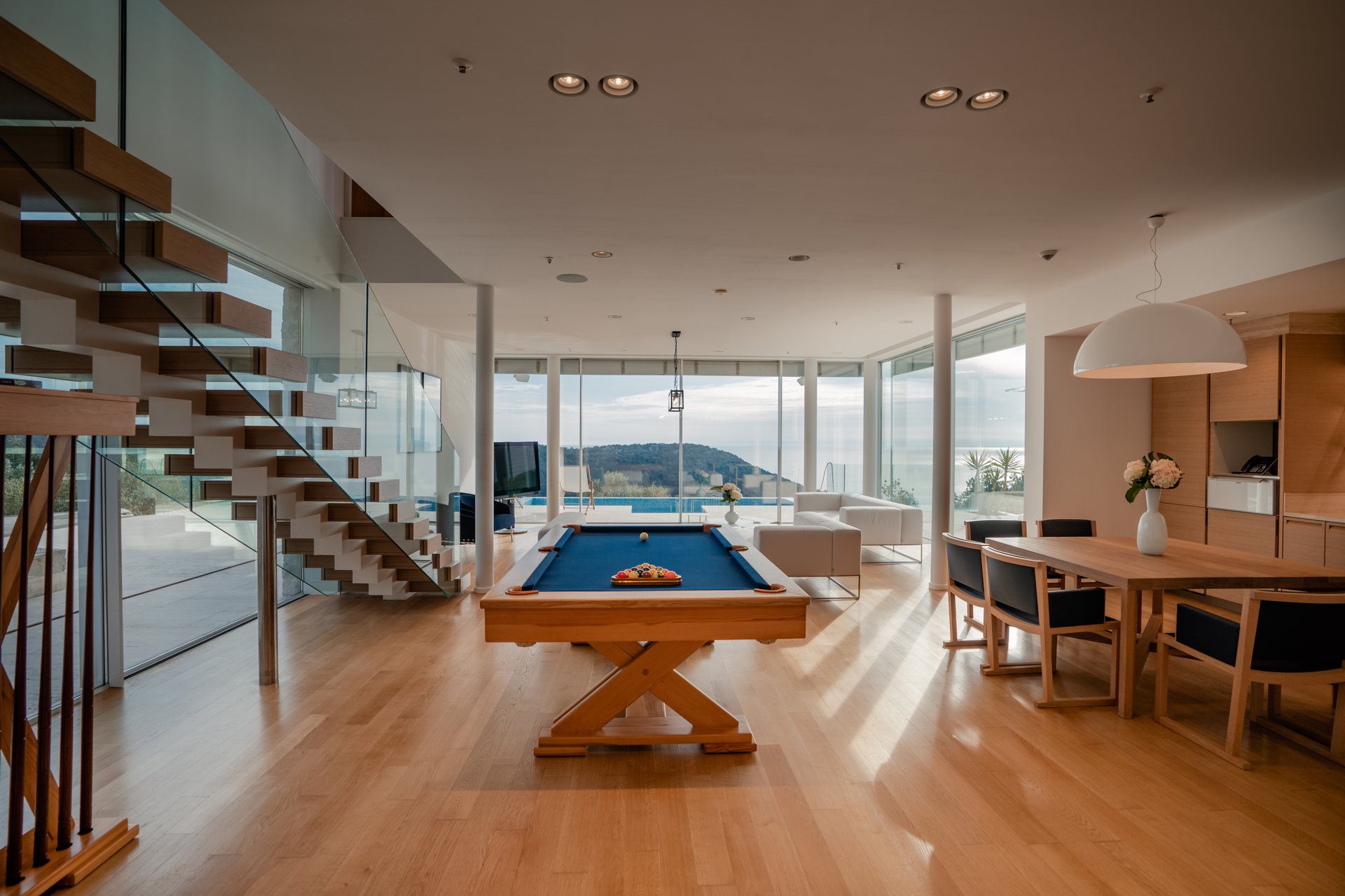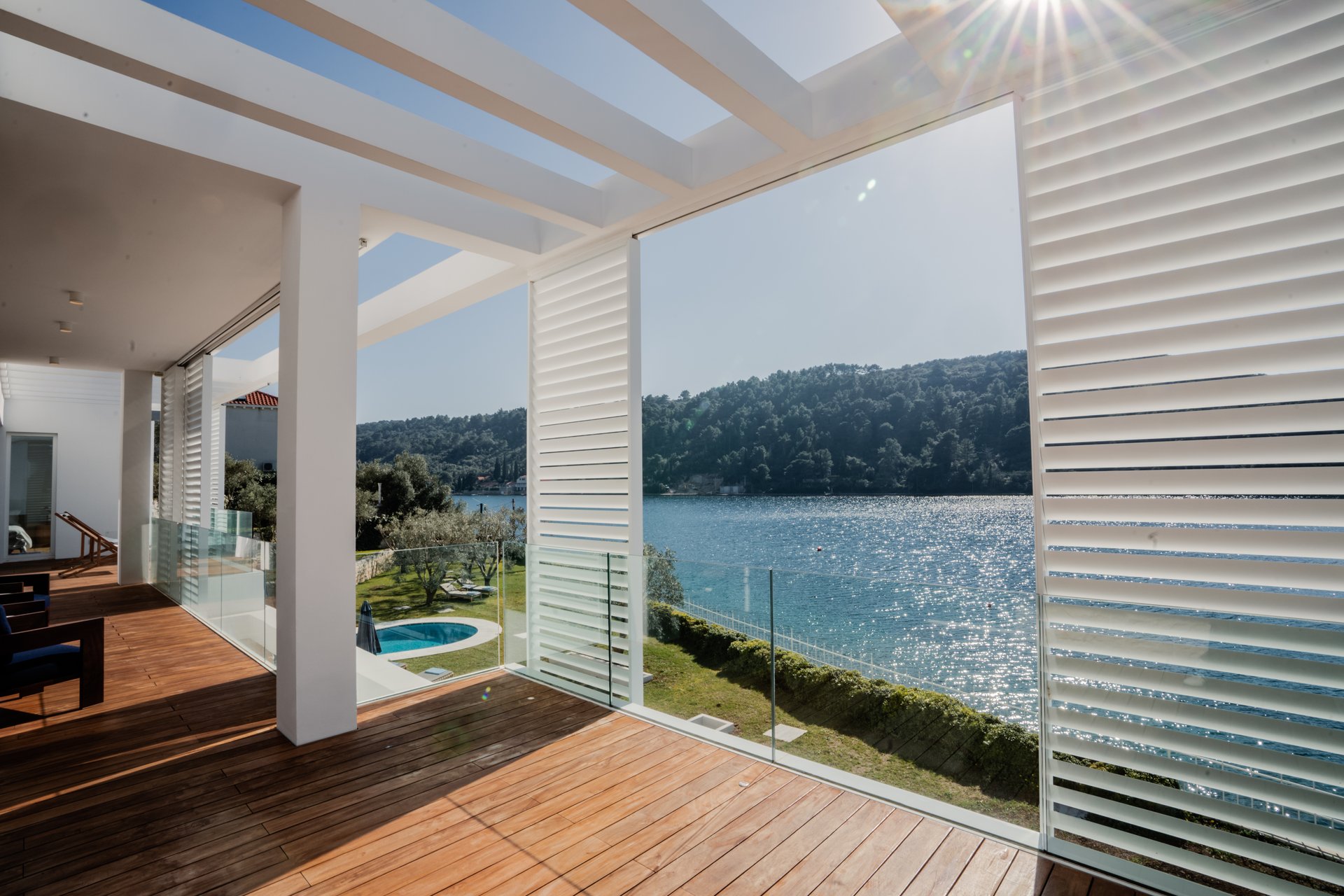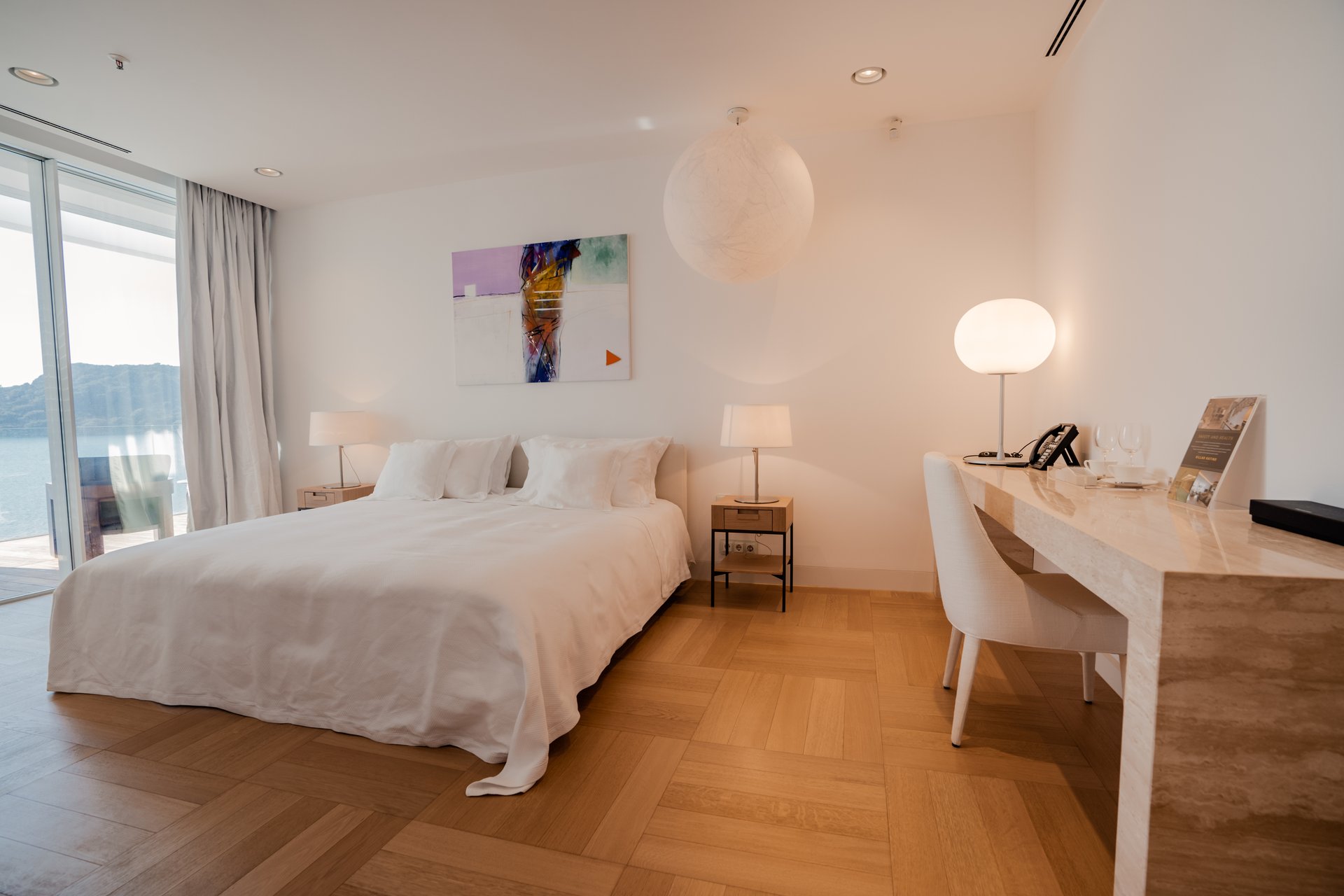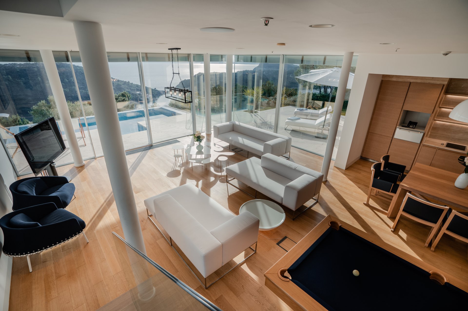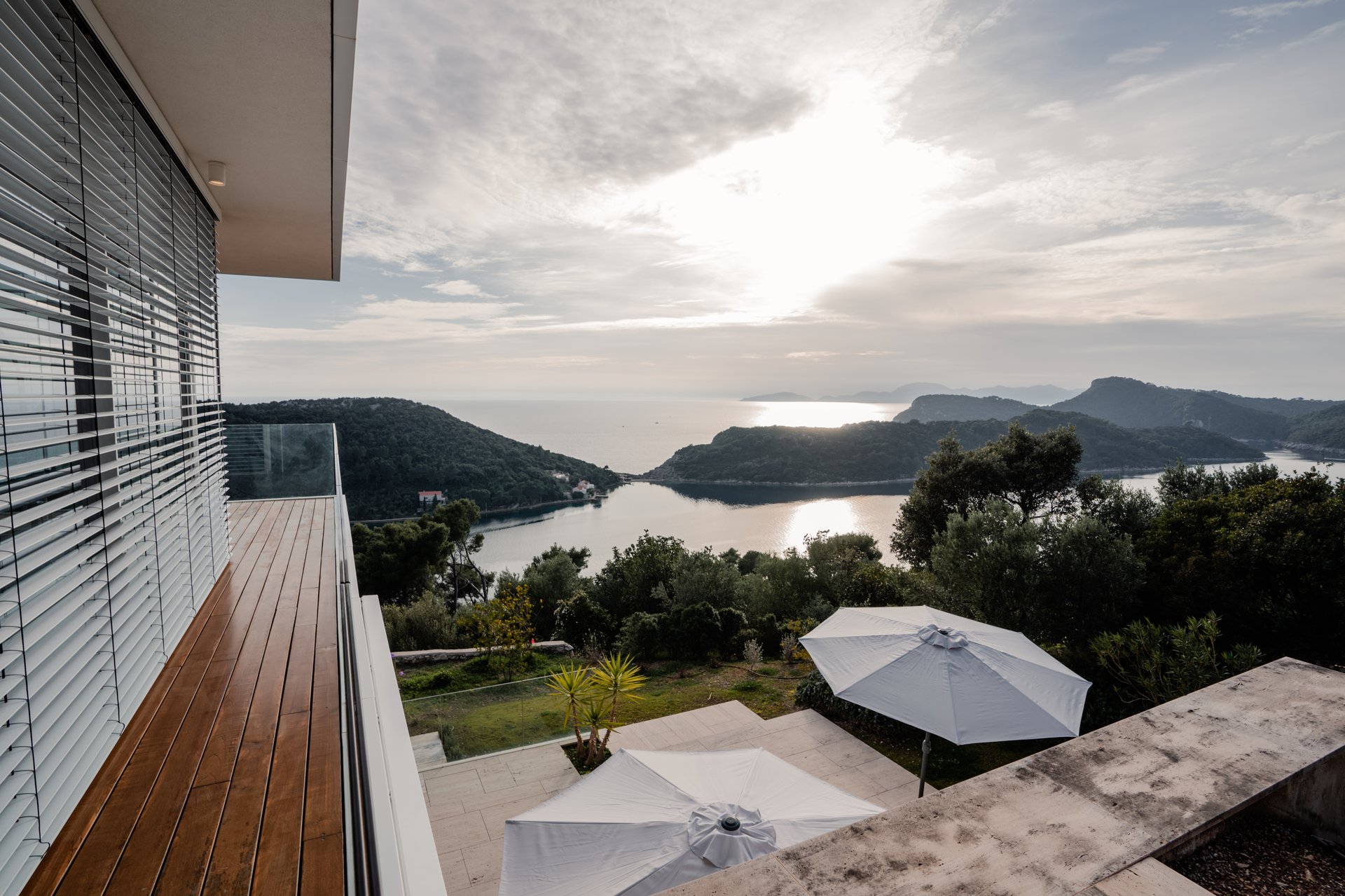 Each bedroom across the estate offers a private retreat, complete with spacious balconies furnished with elegant outdoor seating, sun loungers, and parasols. Whether you’re enjoying a peaceful sunrise, an afternoon book, or an unforgettable Adriatic sunset, every moment is framed by beauty and tranquility. Interiors are bathed in natural light, thoughtfully styled with soft tones, rich textures, and clean lines that invite rest and reflection.