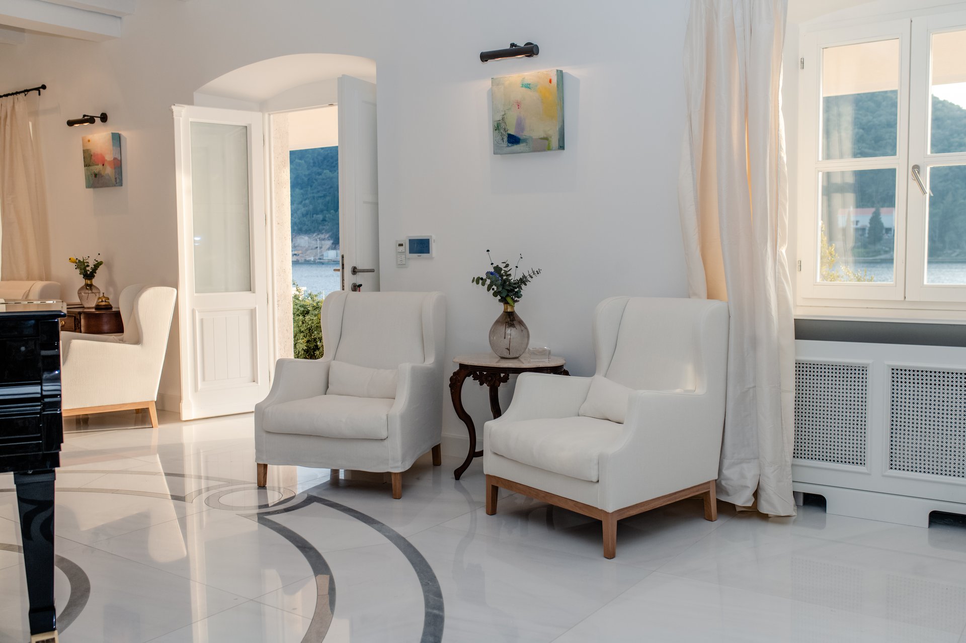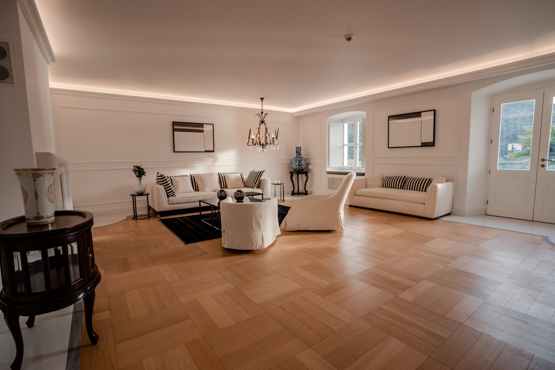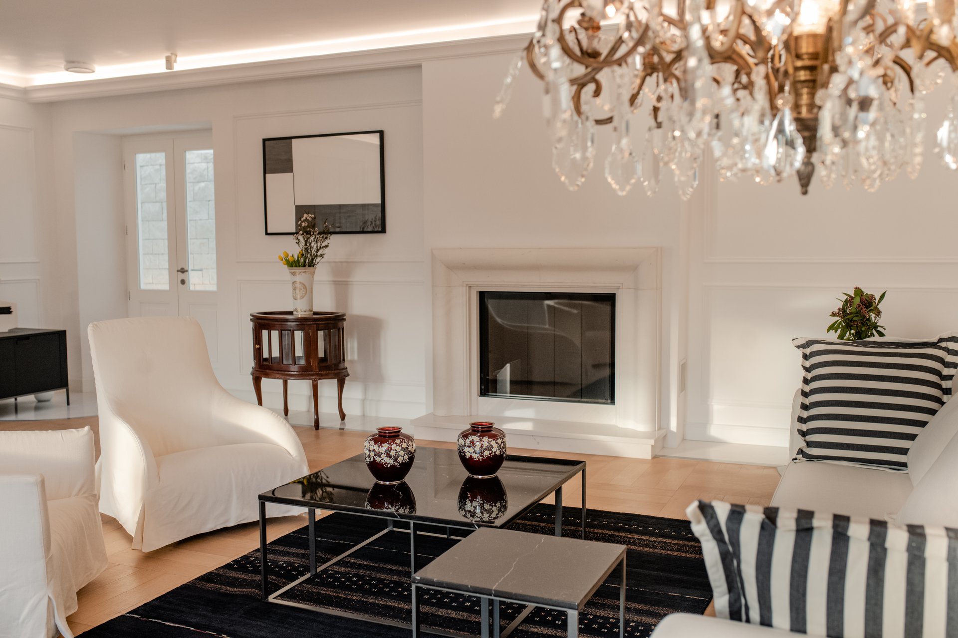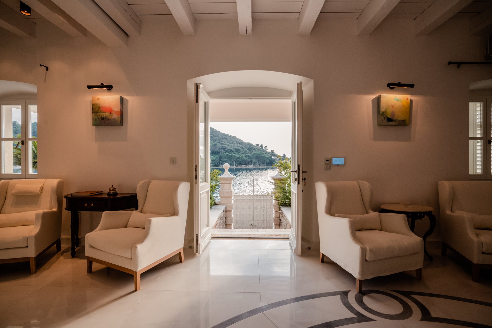 At the heart of the property lies the original stone mansion, now lovingly restored to preserve its authentic façade and historic charm. Surrounding it are three newly built villas, each with its own interior concept, enriched by bespoke furniture, artistic lighting installations, and original works by Croatian artists. The design of every space reflects a seamless blend of the traditional and the contemporary, allowing guests to experience both the legacy of the past and the comfort of modern living.