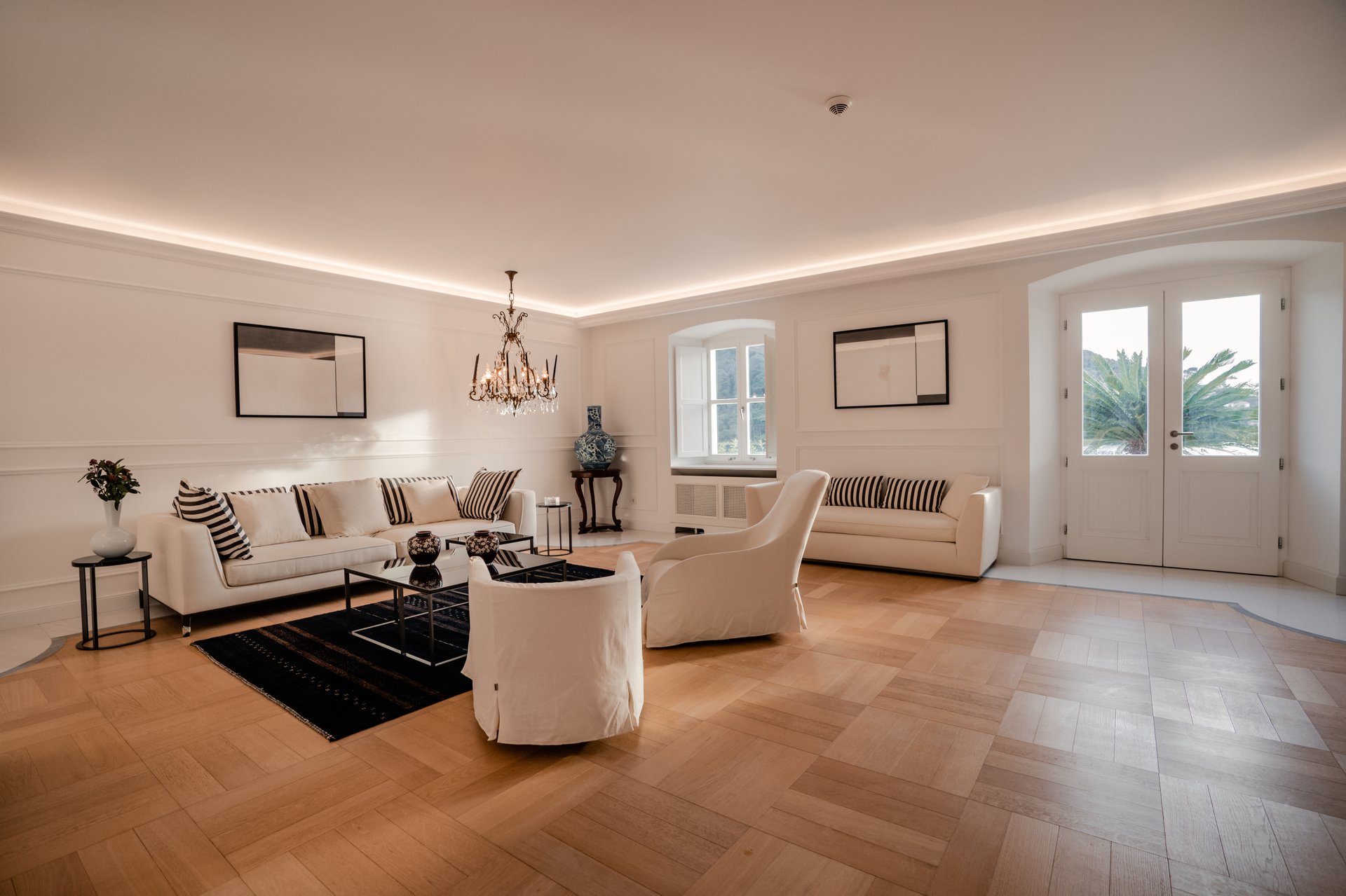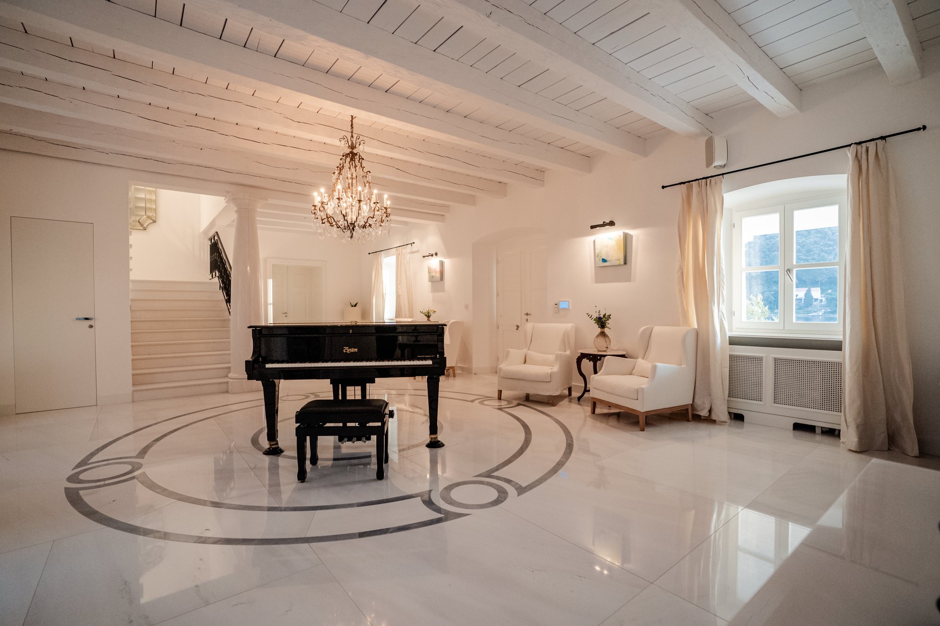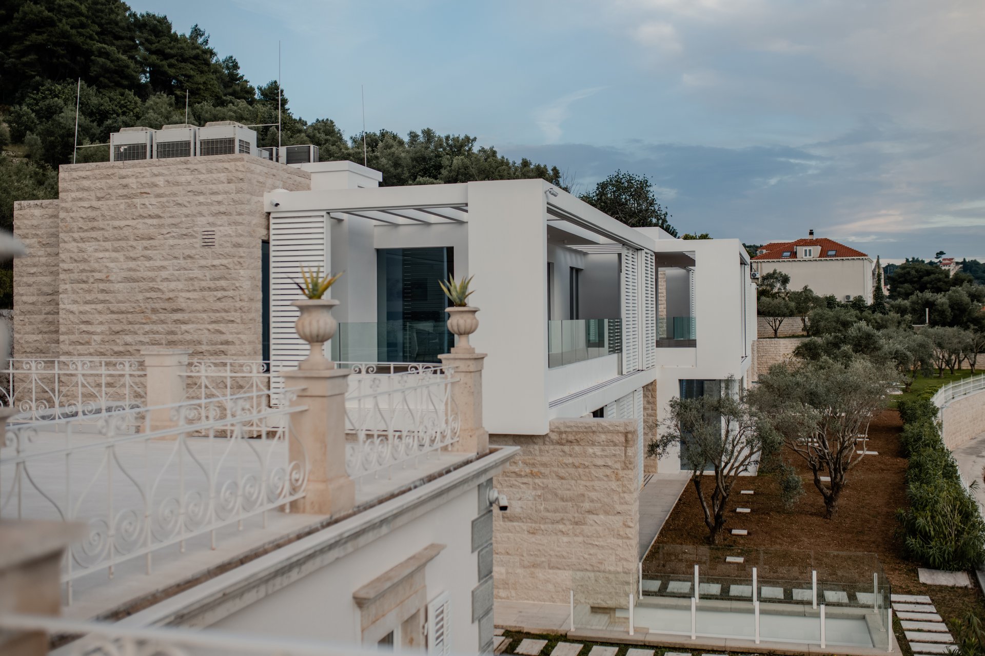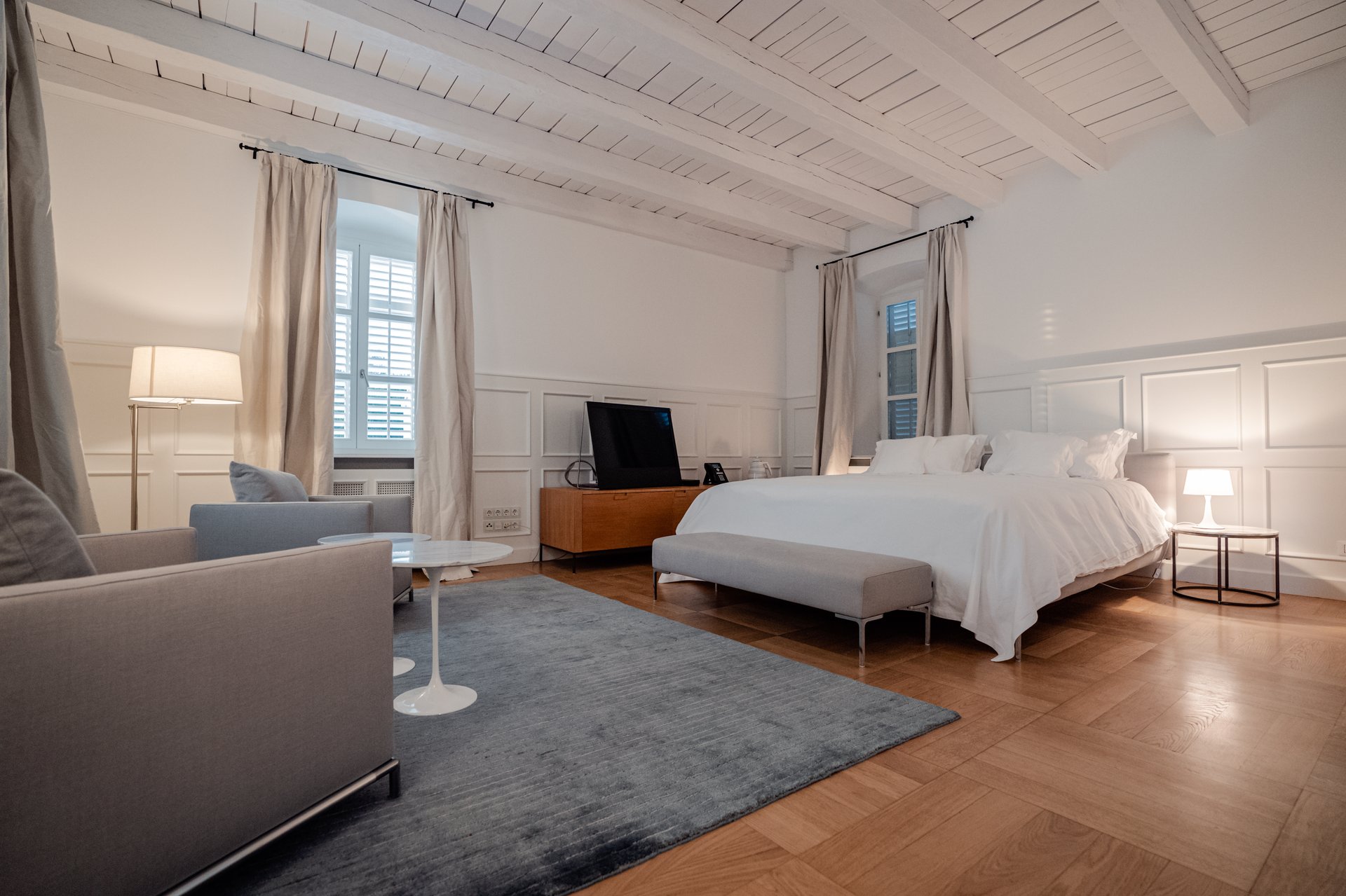 At the heart of the property lies the original stone mansion, now lovingly restored to preserve its authentic façade and historic charm. Surrounding it are three newly built villas, each with its own interior concept, enriched by bespoke furniture, artistic lighting installations, and original works by Croatian artists. The design of every space reflects a seamless blend of the traditional and the contemporary, allowing guests to experience both the legacy of the past and the comfort of modern living.