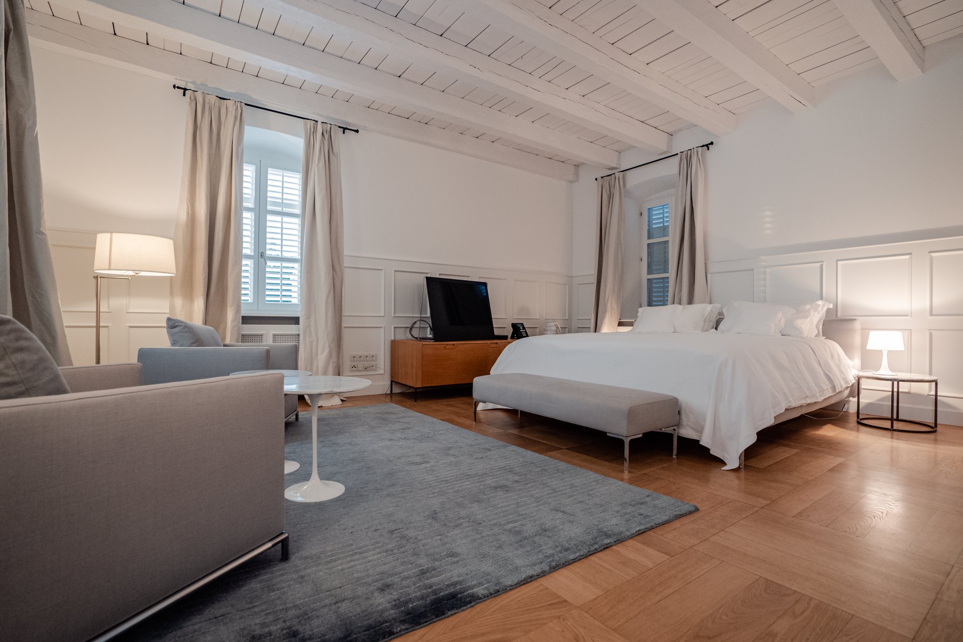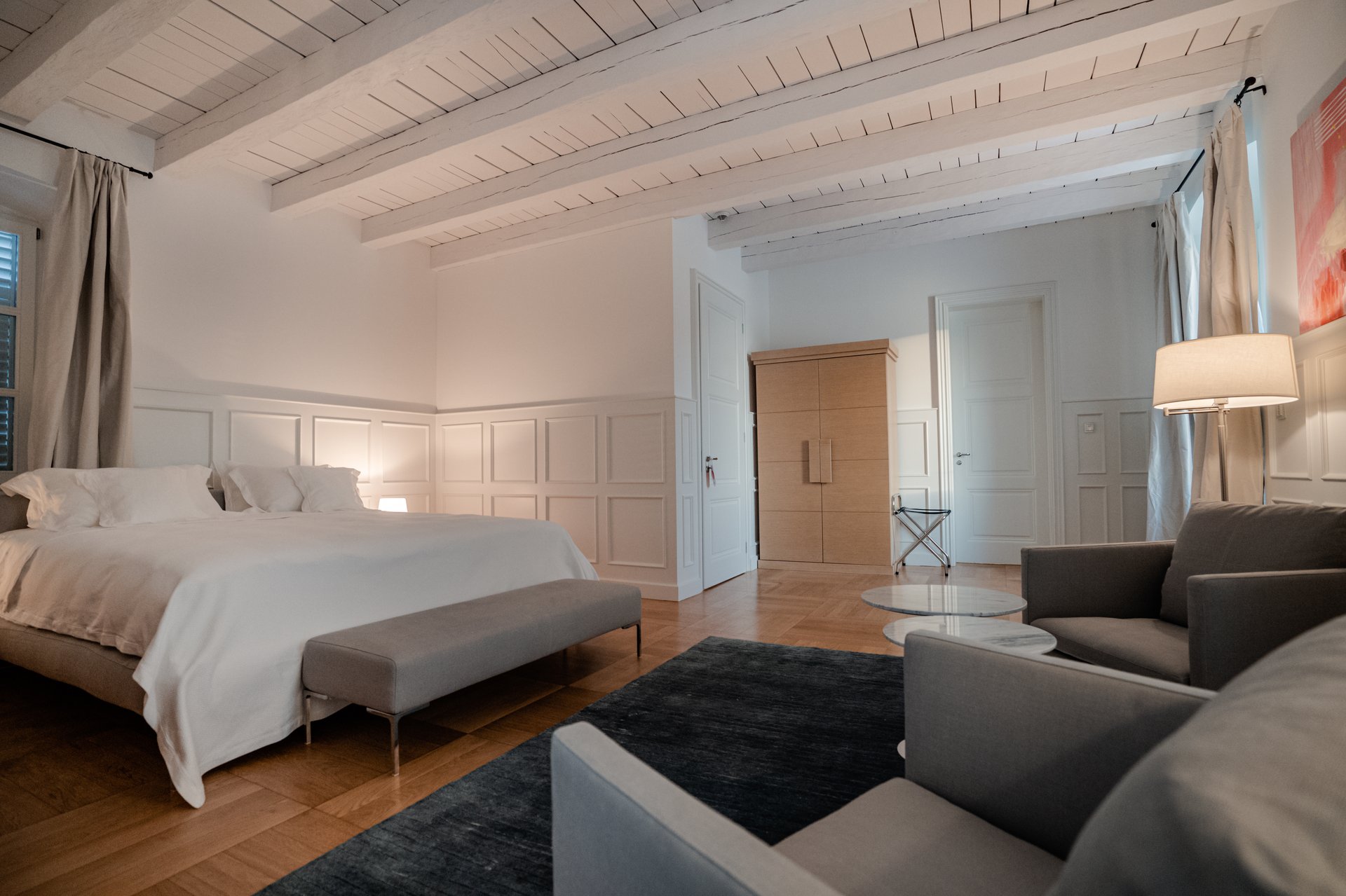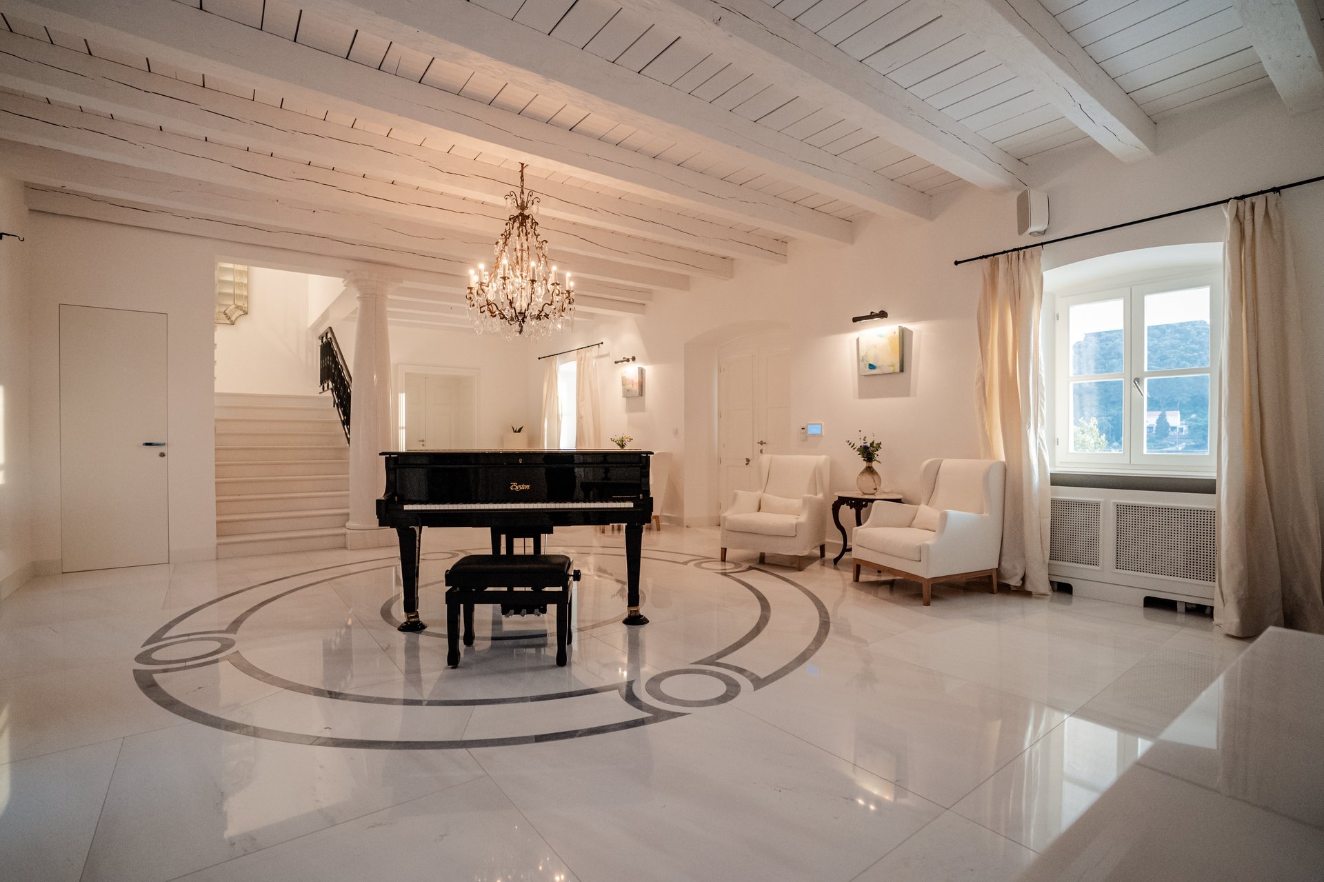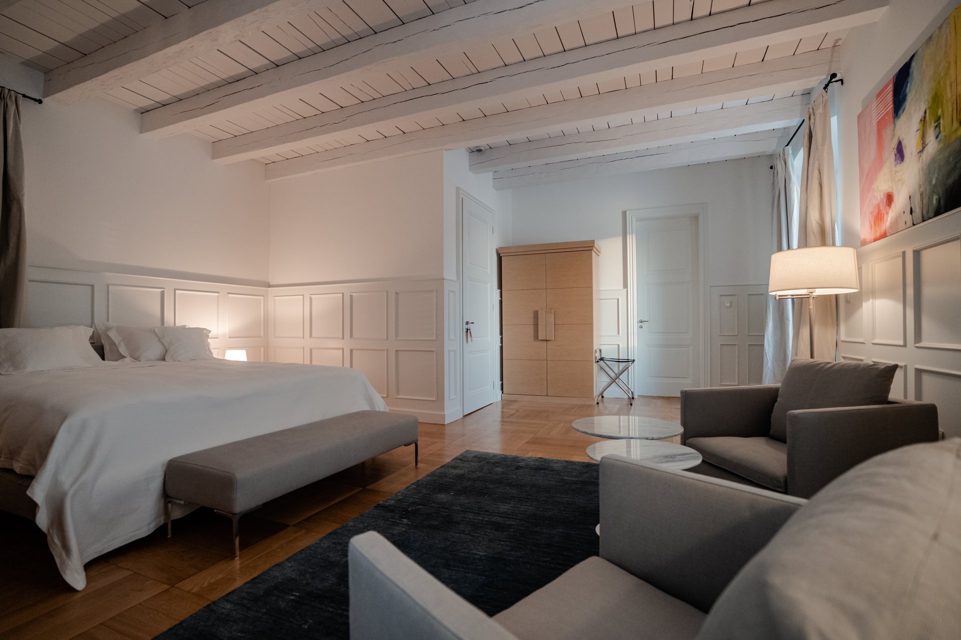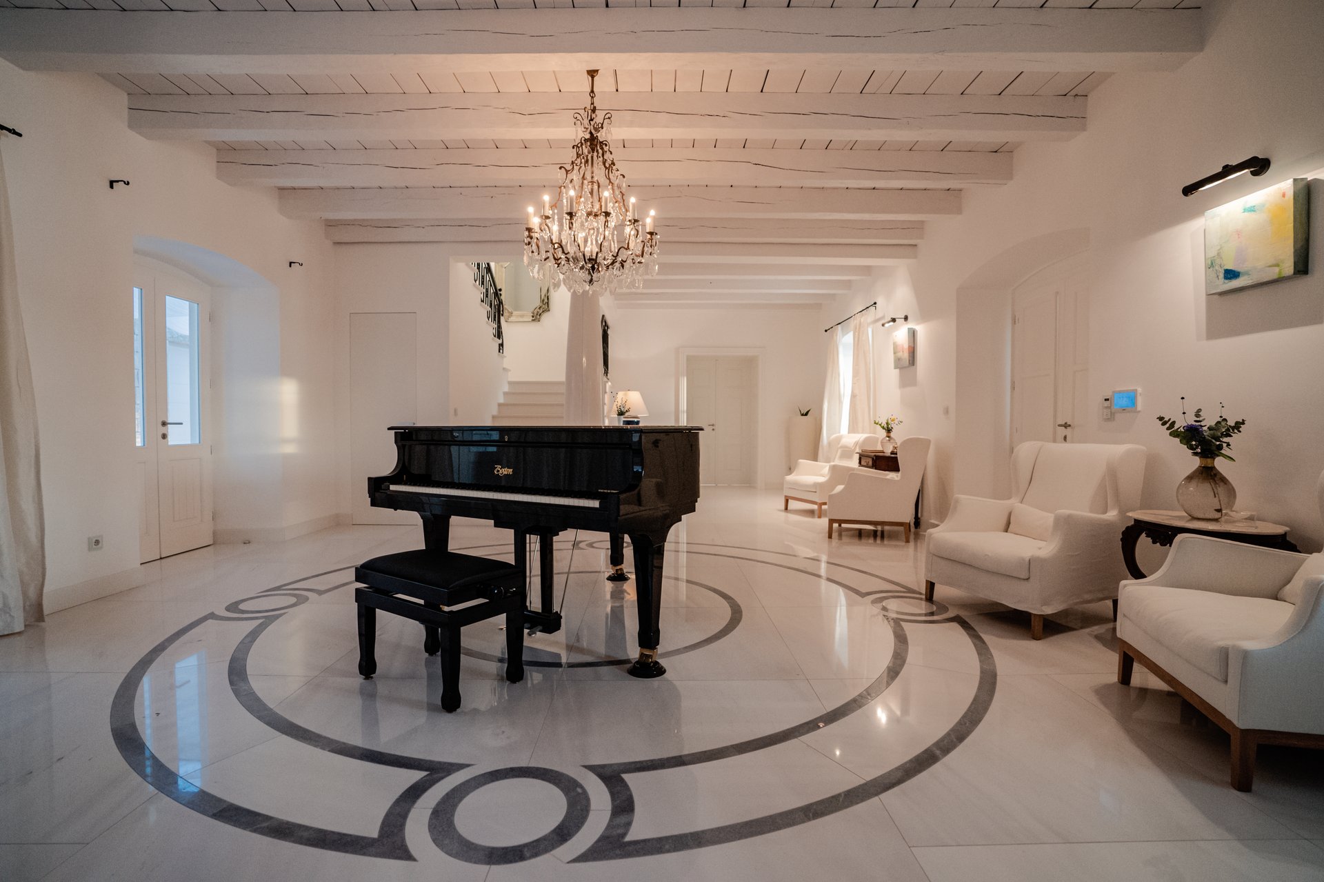 At the heart of the property lies the original stone mansion, now lovingly restored to preserve its authentic façade and historic charm. Surrounding it are three newly built villas, each with its own interior concept, enriched by bespoke furniture, artistic lighting installations, and original works by Croatian artists. The design of every space reflects a seamless blend of the traditional and the contemporary, allowing guests to experience both the legacy of the past and the comfort of modern living.