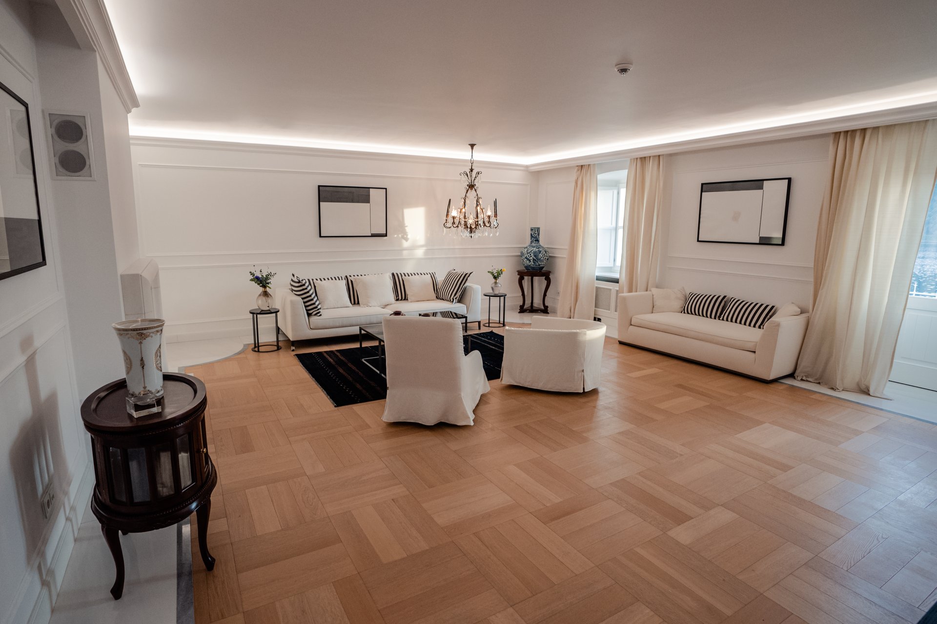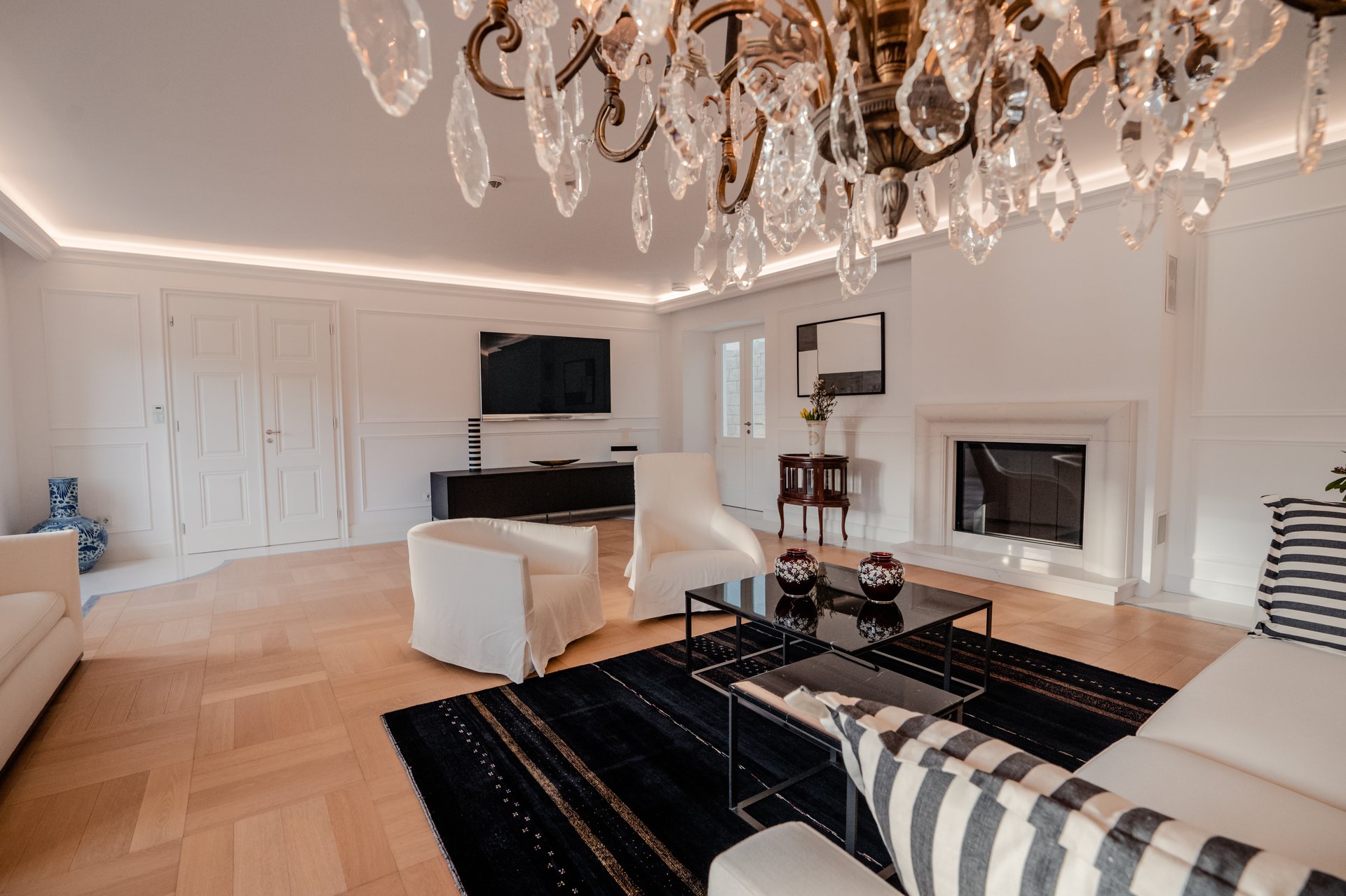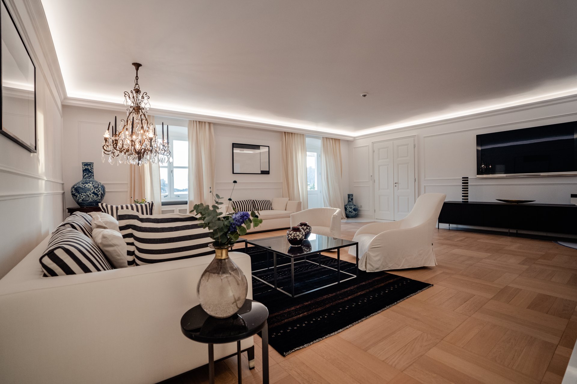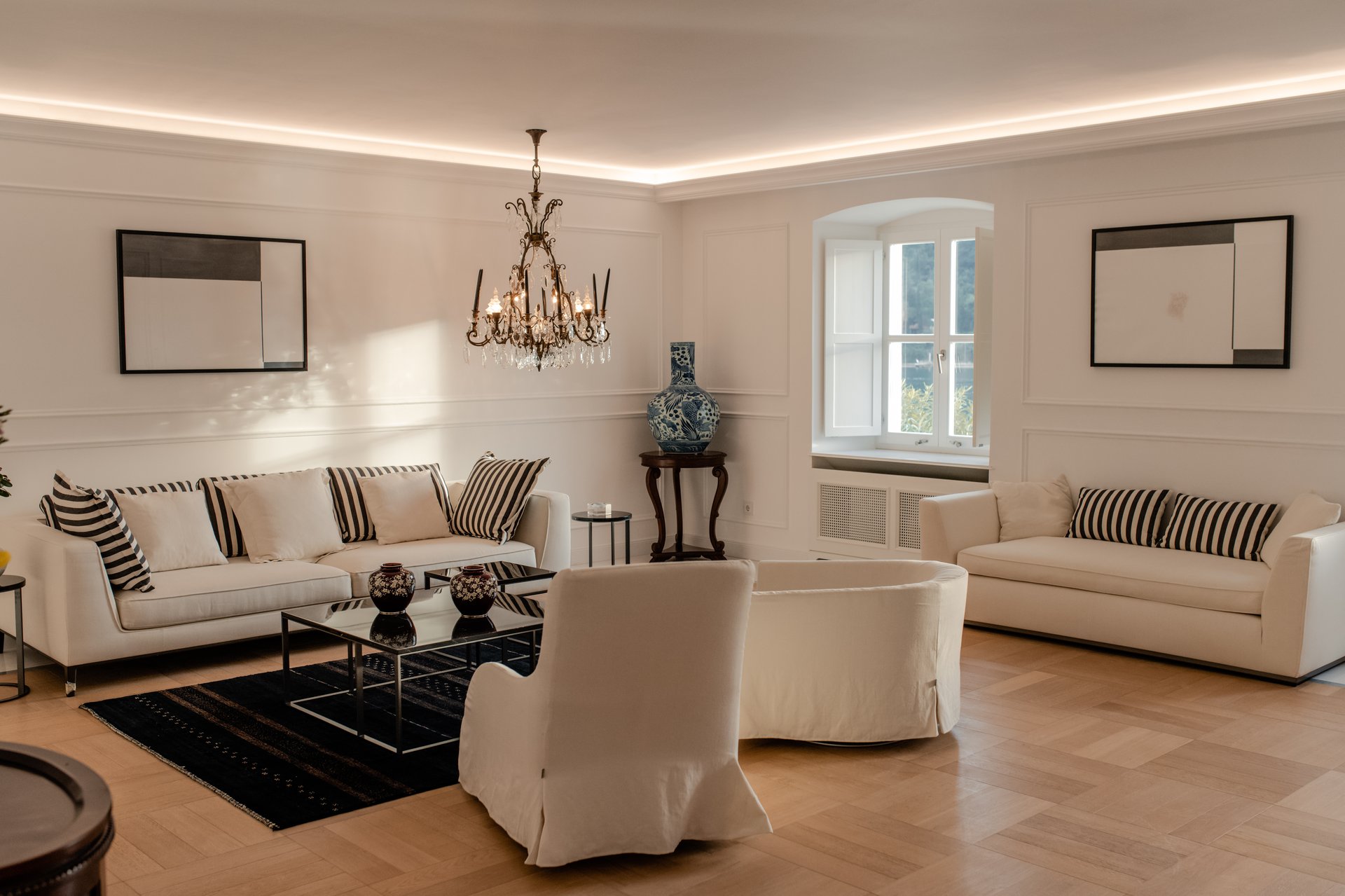At the heart of the property lies the original stone mansion, now lovingly restored to preserve its authentic façade and historic charm. Surrounding it are three newly built villas, each with its own interior concept, enriched by bespoke furniture, artistic lighting installations, and original works by Croatian artists. The design of every space reflects a seamless blend of the traditional and the contemporary, allowing guests to experience both the legacy of the past and the comfort of modern living.