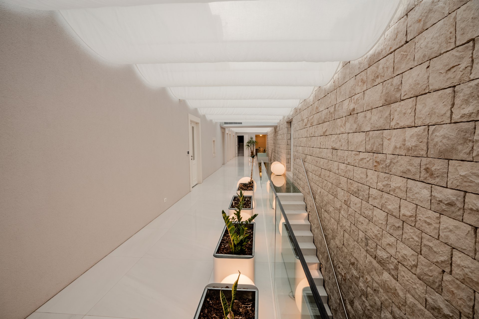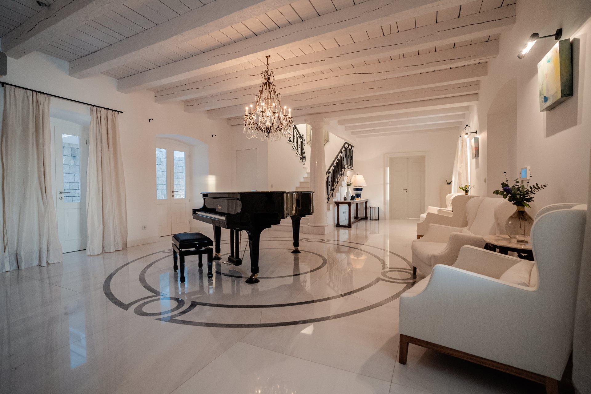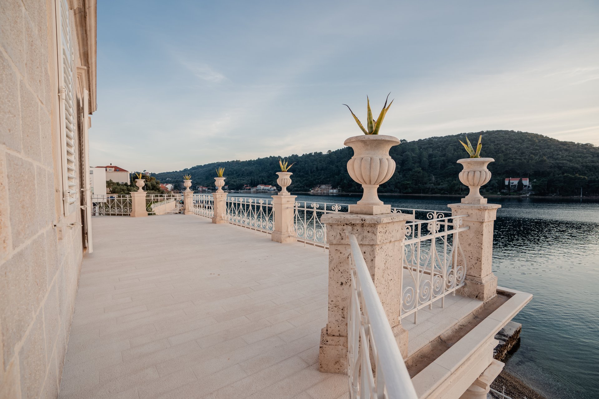 Each bedroom across the estate offers a private retreat, complete with spacious balconies furnished with elegant outdoor seating, sun loungers, and parasols. Whether you’re enjoying a peaceful sunrise, an afternoon book, or an unforgettable Adriatic sunset, every moment is framed by beauty and tranquility. Interiors are bathed in natural light, thoughtfully styled with soft tones, rich textures, and clean lines that invite rest and reflection.