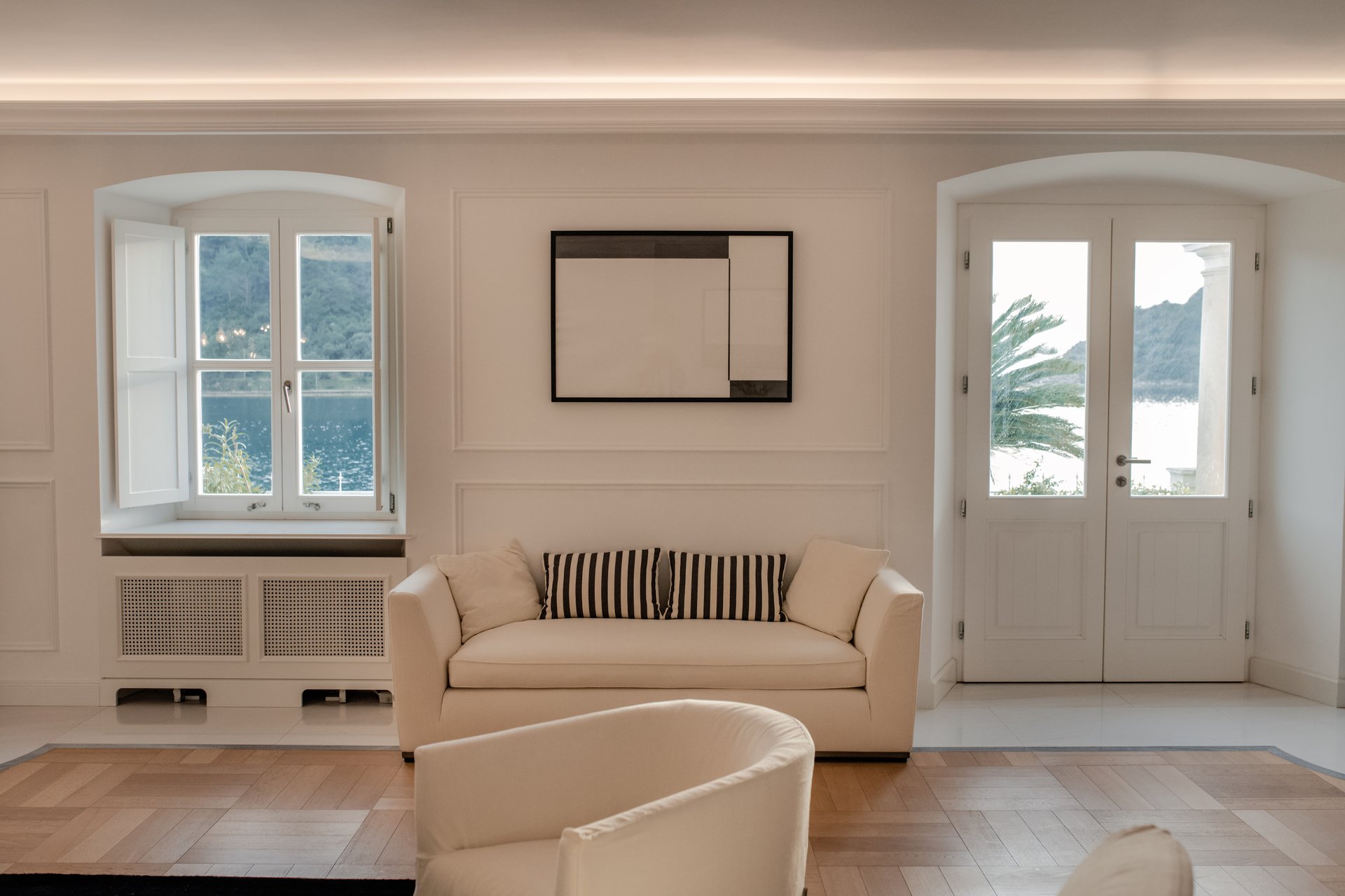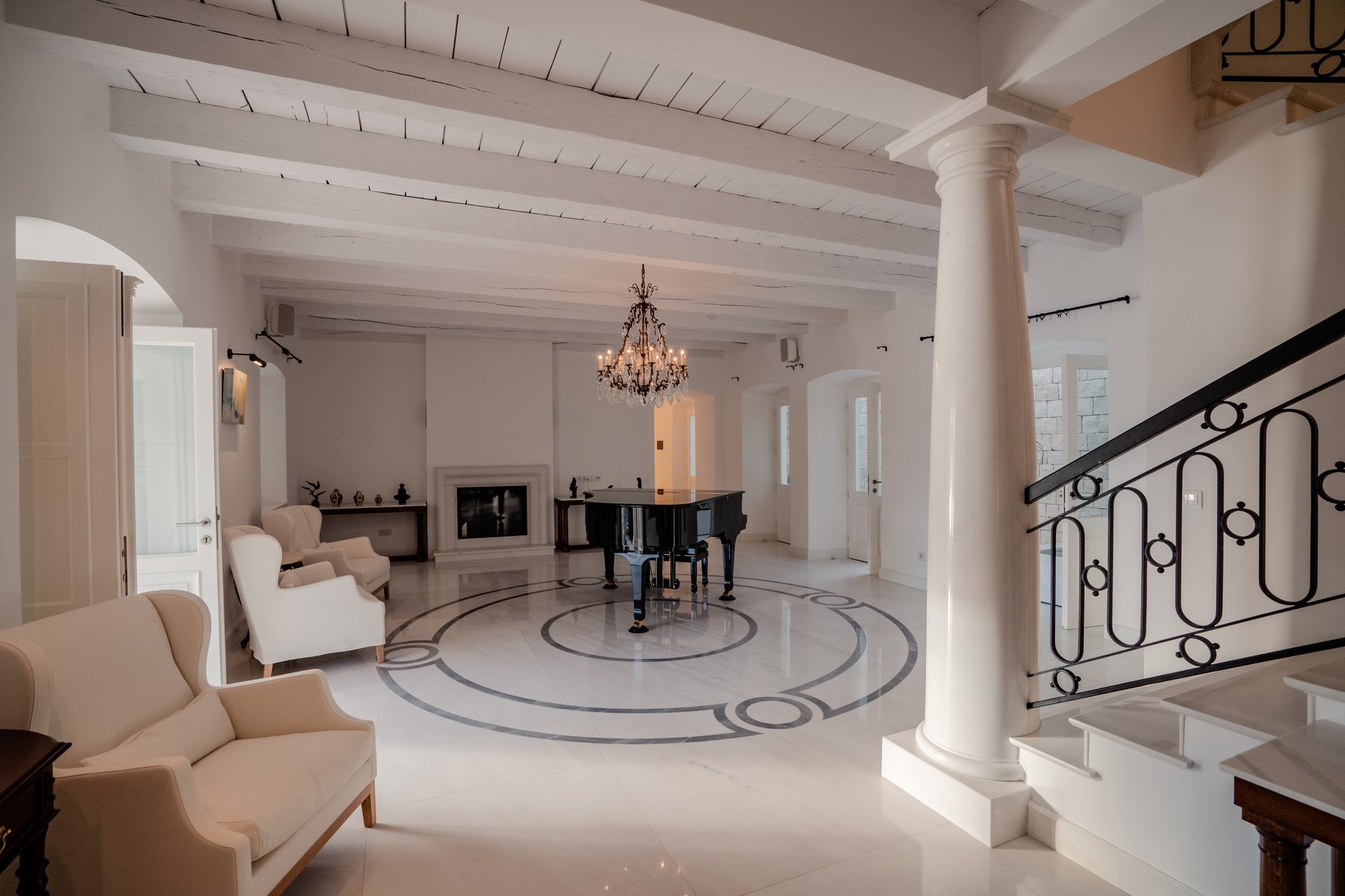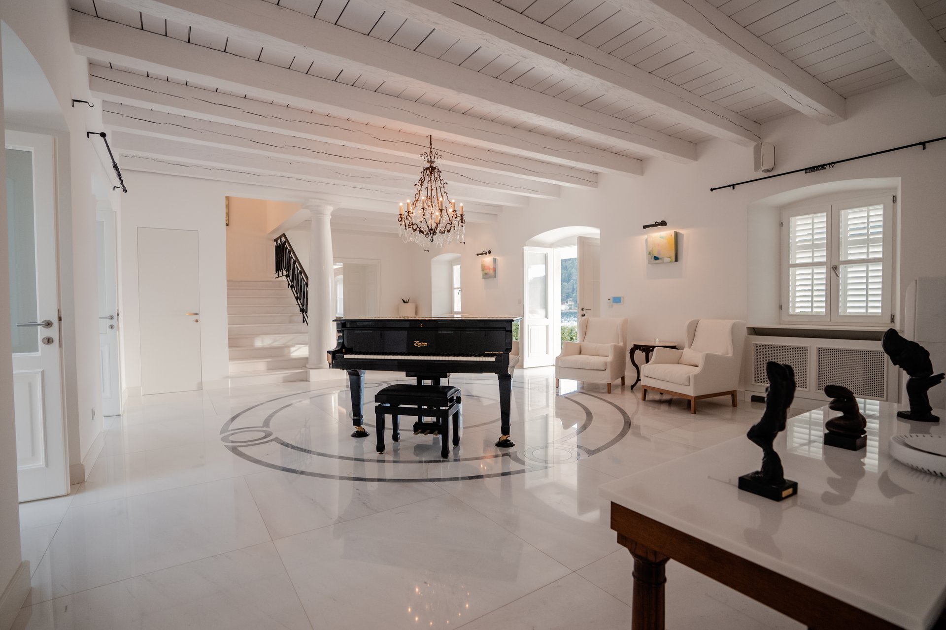 Each bedroom across the estate offers a private retreat, complete with spacious balconies furnished with elegant outdoor seating, sun loungers, and parasols. Whether you’re enjoying a peaceful sunrise, an afternoon book, or an unforgettable Adriatic sunset, every moment is framed by beauty and tranquility. Interiors are bathed in natural light, thoughtfully styled with soft tones, rich textures, and clean lines that invite rest and reflection.